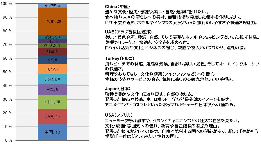 ■人気の訪問先:Top3は中国、UAE、トルコ。日本、アメリカと続く。